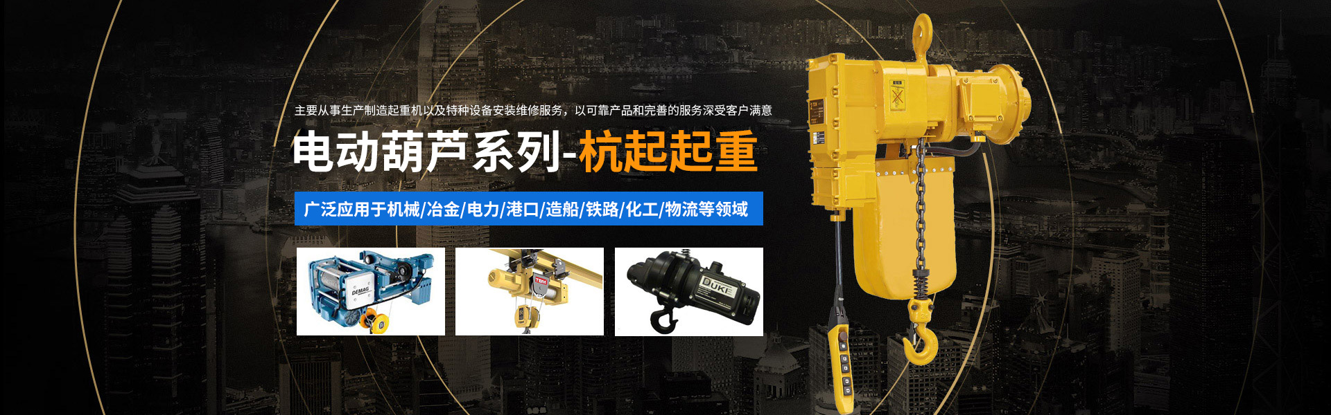 產品中心主要經營門式起重機、橋式起重機、電動葫蘆、懸臂吊、升降平臺、起重機配件的研發、銷售、安裝和維修。